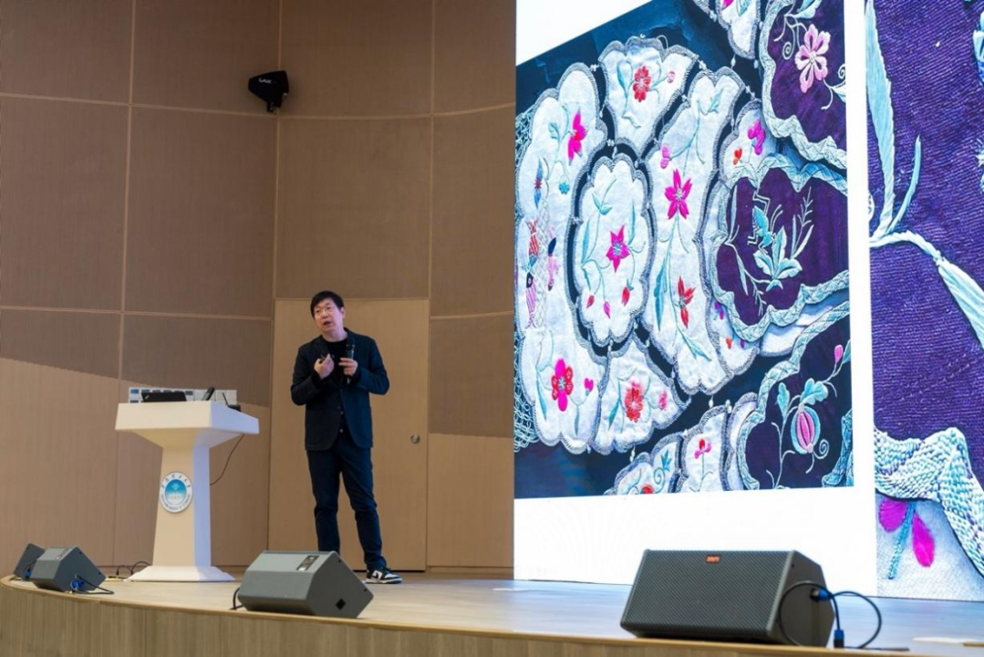 贾玺增教授向大家介绍了中国服饰文化独特的美学特征。贾教授通过讲解中国传统服饰色彩、纹样、工艺等,指出中国传统文化中蕴含的中国美学并不是单纯的复刻,准确合理把握“在地化叙事”方能展现出人文与产品的自然融合。