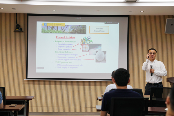 On March 24, Prof. Julian X.X.Zhu from Université de Montréal was invited to the School Of Emergent Soft Matter to give a lecture on Molecular and Macromolecular Hydrogels and Marginal Solubility to share his group's innovative work in the design, preparation and application of biomedical polymer materials (including stimuli-responsive polymer hydrogels, bile acid-modified polymers, etc.).