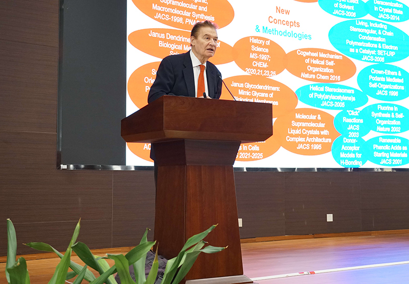 Prof. Virgil Percec focused on novel synthesis methods and self-assembly design of soft matter, showcasing the laboratory's milestone achievements in nickel catalyzed coupling reactions and dendritic macromolecules. He introduced that low-cost nickel catalysts can replace traditional palladium, activate aryl chlorides and ester substrates, and promote the green transformation of the pharmaceutical industry; Through the dual ligand design strategy, nickel intermediates can be stored at room temperature for a long time, significantly improving reaction controllability. In response to the deactivation problem caused by steric hindrance in the synthesis of high generation dendritic molecules, the Percec team proposed a solution where the convergence method is superior to the divergence method, and revealed the core contradiction between the dynamic instability of low-generation dendrimers and the chemical inertness of high-generation dendrimers, laying the foundation for precise design of functional materials. In the biomedical field, the low-charge polymer carrier developed by the Percec team effectively solves the dual challenges of mRNA vaccine targeting and room temperature stability by optimizing packaging efficiency through microfluidic technology; The self-assembled vesicles based on amphiphilic Janus dendritic polymers have successfully simulated the sugar chain structure of cell membranes, providing a new tool for cancer treatment and vaccine development.