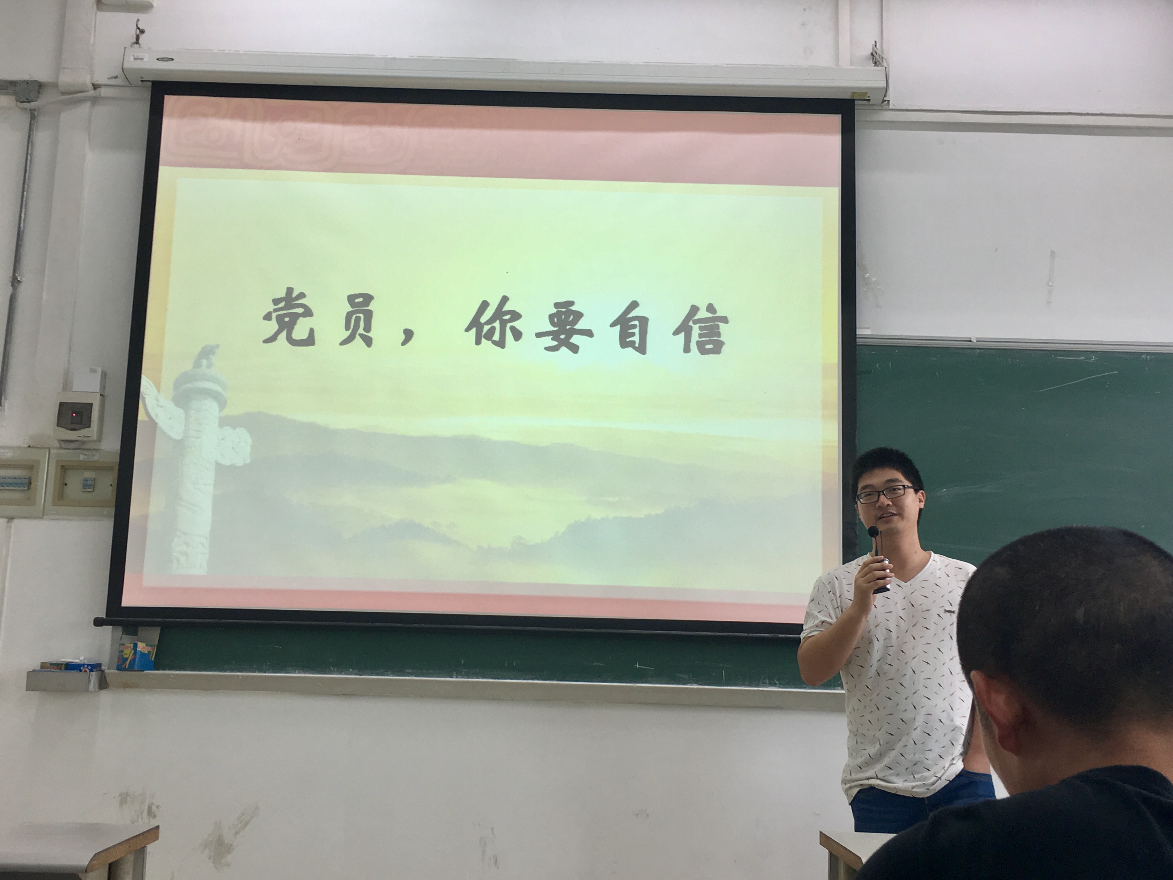 本次党课由支部组织委员谢丽华主持,由支部书记付根迪主讲,主要是告诫我们要自信,要严格要求自己。