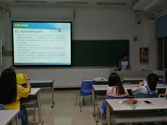 近日,与大学生有关的安全事件成为社会热点。南方医科大学发生大学生行凶事件、不断被曝光的大学生借贷事件……对于大学生的安全教育刻不容缓,而且必须细化到每一个人。本次班会首先由班长琪琪格主持,从消防安全、交通安全、治安防范、日常生活安全和女生安全须知等方面讲述了我们平时的安全隐患和相关防范措施。列举案例,并进行安全知识问答。同学们踊跃回答。