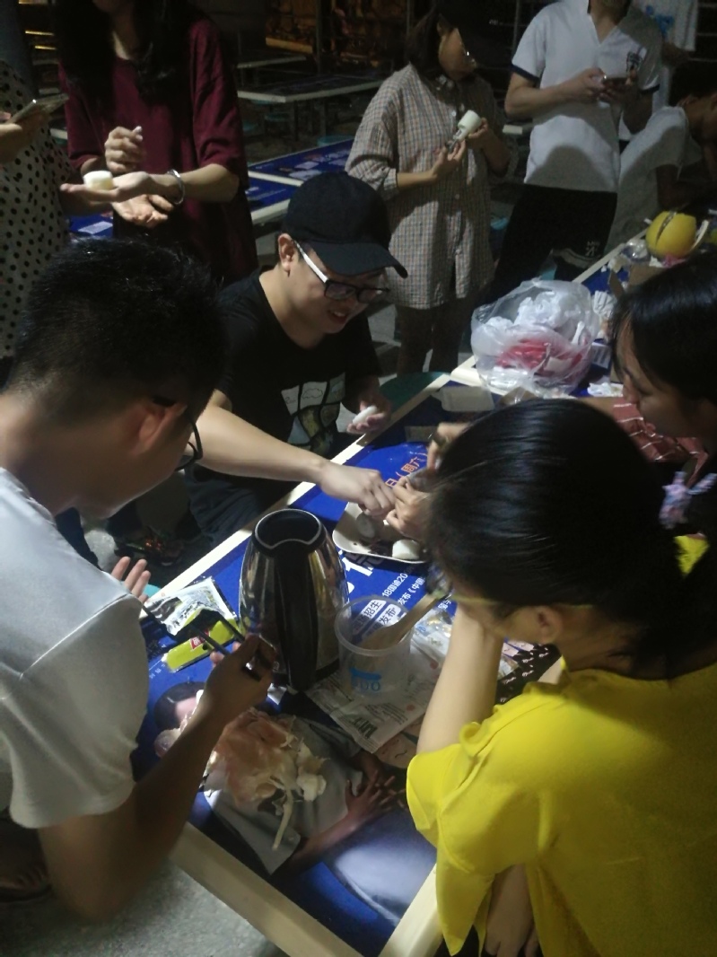 同学们用自行网购的馅料、模具,做好月饼皮,选择喜欢的馅料包进冰皮里,再用模具压制成月饼的形状。月饼的口味琳琅满目,不但有“柚子”“板栗”“紫薯”“红豆”“椰蓉”等较为常见的馅料,还有“果冻馅”“酸豆角馅儿”“辣条馅儿”等新奇有趣的口味。同学们在自己动手和与大家互动的过程中增进了感情,也在一片欢声笑语中缓解了求学游子的思乡之苦。