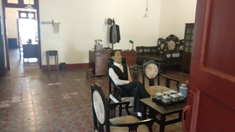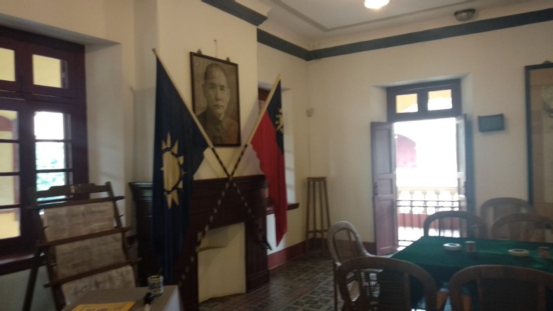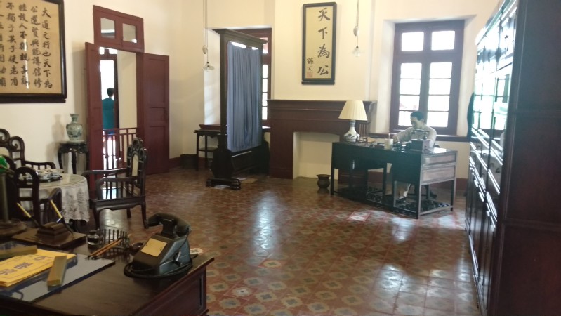 孙中山大元帅府纪念馆是以全国重点文物保护单位大元帅府旧址为依托建立的遗址性纪念馆。纪念馆总占地面积为8020平方米,由南北两座主体大楼、东、西广场和门楼等组成;两座主体大楼为三层劵拱的西式建筑,南楼设“帅府百年”复原陈列,北楼有“孙中山在广州三次建立革命政权”的基本史料陈列和专题陈列。上午十时许,支部成员乘坐地铁到达团一大广场站,步行经过江湾桥,远远地便望见孙中山大元帅的雕像伫立在门前广场上。支部成员首先在雕像前高举团旗合影留念,随后便进入大元帅府进行参观。南楼三楼是孙、宋伉俪当时主要的活动区域,包括有孙中山先生的办公室、大元帅府会议室、孙宋卧室、餐厅、盥洗室、无线电报室和宋美龄曾经住过的小客房。除了按照历史原貌恢复各个房间的布置以外,在孙、宋卧室展厅里有“孙中山口述文件、宋庆龄记录”的小场景,场景中孙中山、宋庆龄二人的塑像用高分子硅胶材料制成,皮肤质感细腻,头发、眉毛、胡须等毛发均用真人的毛发制成,形态逼真,孙宋二人的音容笑貌犹如当年一样再现在我们面前。