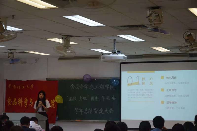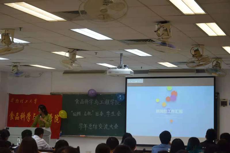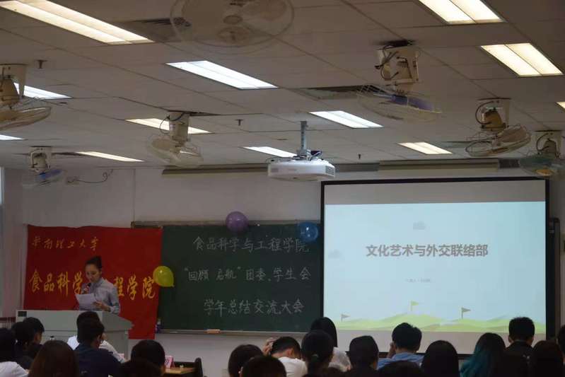 2018年10月14日,食品科学与工程学院团委学生会于华南理工大学大学城校区A4-101隆重召开了“回顾、启航”总结交流大会。出席本次大会工作的嘉宾有:学生会指导老师周恒洋、团委副书记李仁坤、学生会副主席张庭钰。