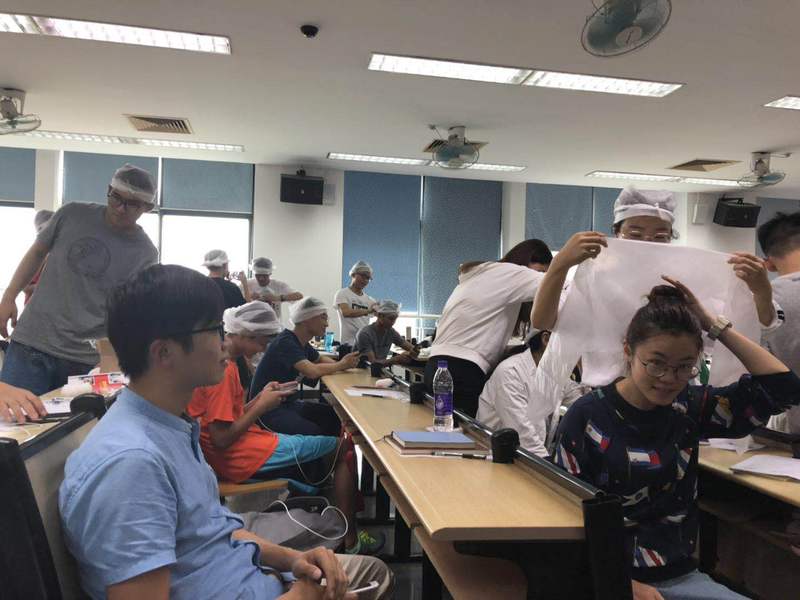 上午的重头戏是心肺复苏。在老师演示完判断心跳呼吸与胸外按压、AED(除颤器)的使用的流程后,同学们进行了分组练习。无论是男生女生,都把眼前的假人当成是真的需要救助的人,都丝毫不在意自己的形象,全身心的投入到急救中去。小组的老师也十分认真负责,耐心的一遍遍讲要点,一遍遍指出同学的不足。由于按压的力度要求很大,很多女生完成动作后都累得气喘吁吁,头发散落下来,口红也在做人工呼吸时被蹭花。但大家都没有抱怨,反而脸上都洋溢着笑容。