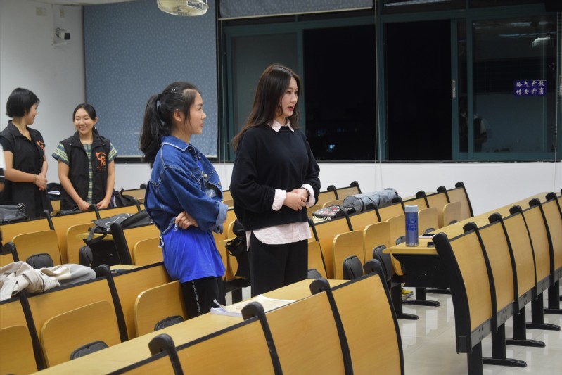 我院礼仪队的招新于2018年10月20日星期六19时在华南理工大学大学城校区A4-604教室拉开序幕。本次活动更是有幸邀请到华南理工大学校学生会礼仪队成员程予沁、吴琼作为嘉宾莅临现场给予培训指导。
