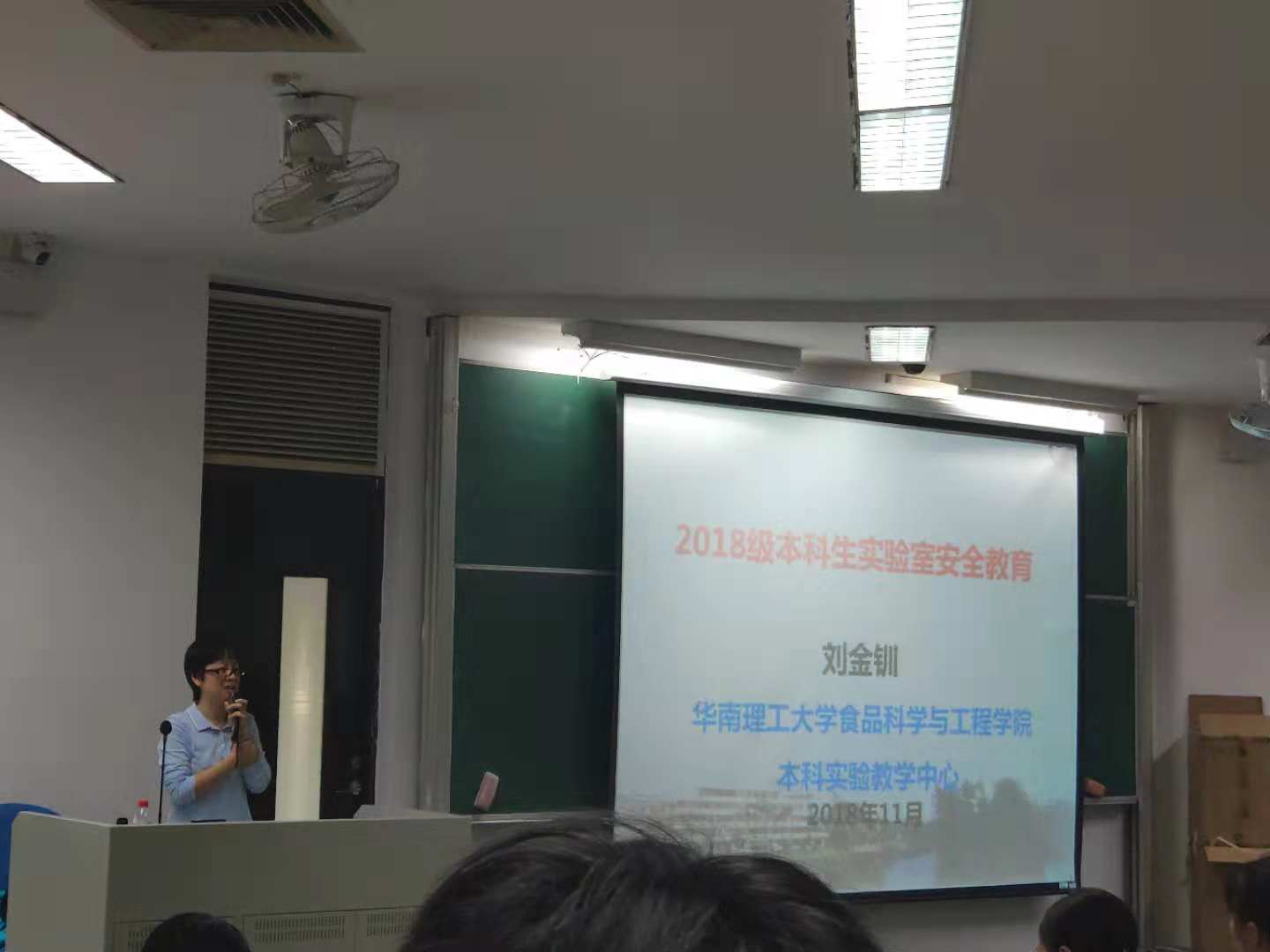 为了让同学们提高安全意识,2018年11月10日15:00,食品科学与工程学院在大学城校区A3 101开展了2018级本科生实验防护用品发放仪式及2018级本科生实验室安全教育讲座,对象是食品科学与工程学院18级全体本科生。