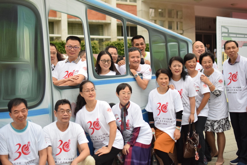虽然雨点一直在不断滑落,但是校友们的热情却并没有减少。他们一起换上印着三十周年纪念的文化衫,一起参观如今的学院楼,一起在22路公交车前合影,一起欣赏为校友返校日与校庆日准备的精彩节目……在学院校友们合影时,高松校长也来到了现场,与校友们一同交流近年来华工的变革与发展。校友们感慨到:华园与食品学院都在向更高远,更美好的目标大步迈进着。