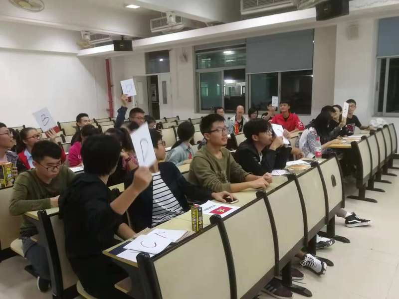 活动首先以“萝卜蹲”这一暖场游戏作为开场。这个游戏考验同学们的反应和灵活性,如果动作和主持人的口令有出入,即被罚下场,最后剩余人数最多的组获得游戏的胜利,得到相应的积分。暖场游戏过后,同学们兴致勃勃,对接下来的知识问答充满期待。
