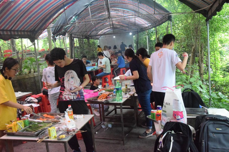 当大巴抵达大夫山附近的烧烤区,四只队伍便开始了他们的烧烤之旅。四组成员自己选调料,选食物并自己烹饪。13时30分结束吃饭,在余下的一小时的自由活动时间里,同学们有的打乒乓球、打桌球、打麻将或者玩桌游。14时30分同学们前往大夫山公园,先是进行了“踩爆气球”游戏,接连而来的爆炸声像是这些天里的不开心都得到了释放。在观赏大夫山的过程中,同学们先是进行了关于马克思主义相关词语的“你画我猜”游戏,后进行了关于马克思主义相关人物的表演竞赛。最后,不胖队拿下了第一。