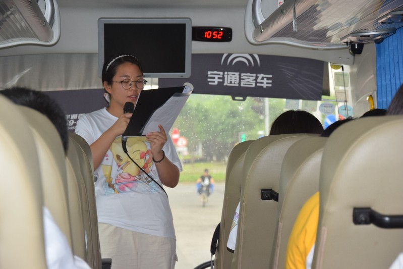 2019年4月26日10时40分,同学们在华南理工大学大学城校区的体育馆南门集合,并分成了对对队、怼怼队、派队、不胖队四只队伍坐车向大夫山出发。班长晏佳宁在车上给同学们开了主题班会,并进行了知识问答,同学们都纷纷参与抢答。接下来,宣传委员高方阳组织了关于“红色文化”的音乐接力游戏,四组的队员纷纷亮出了他们深厚的歌词功底,抢答声穿透车顶,直冲云霄。
