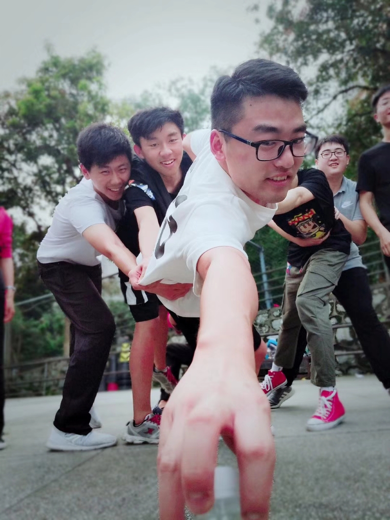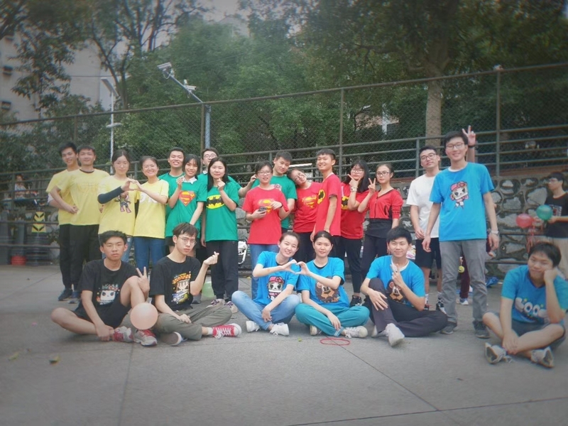 红黄蓝黑绿队色彩缤纷,当他们站在一起的时候,俨然最近的大热点复仇者联盟的模样——食品团学联盟。第一个游戏是撕名牌,各队在开始前合作商量着对策,这个游戏看似跑跑闹闹很简单,实际上很需要参与者本身的机动性和团队之间的配合保护和进攻,很好地促进了各队部长间的感情。追逐途中发生了一些跌倒的意外,同队的部长很能照顾伤员,其他队的部长也能及时停下关心伤员,很好地体现了“友谊第一,比赛第二”的原则。下一个游戏是团队合作雷区取水,一开始大家都以为是不可能的任务,最终各队在相互交流学习,再在各自队员的协同合作之下,都挑战成功了。