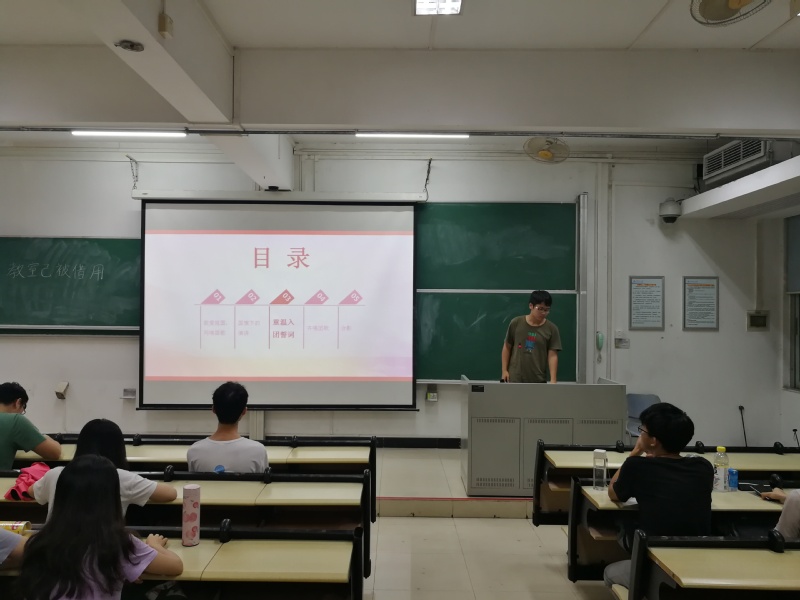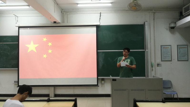 2019年9月9日19时30分,2017级食品科学与工程一班(以下简称“本团支部”)的同学们在华南理工大学五山校区340302组织了一次以“我与祖国共奋进——国旗下的演讲”为活动主题的九月团日活动。