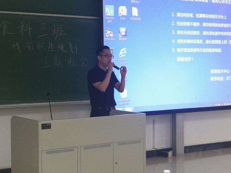 本次班会的主题为“分享未来,筑梦前行”,班主任冯云子老师出席了本次会议,同时还有09级食品学院硕士夏克胜师兄登台为我们展示就业面试经验。