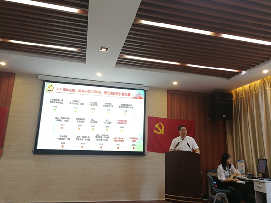 本次专题教育孟勋老师主要从新中国两个一百年的发展历程、老一辈革命家们做出的奋斗、华工及华工青年为建设新中国做出的努力、新一代华工青年应有的使命与担当4个方面讲述了历史赋予新时代青年的责任与使命。回顾两个一百年的发展历程,孟勋老师详细介绍了共产党人以及全中国上下为实现经济繁荣、民主健全、社会和谐、科技进步做出的重大努力,这段红色的记忆点染了每一位同学的心绪。讲述老一辈革命家时,孟老师更是情绪激昂,他列举了钱学森为回国建设而做的拼搏,铁人王进喜为大庆石油开采做出的努力。当一段段视频与文字资料呈现在同学们的眼前时,同学们震惊了,动容了。而处于那段历史中的华南理工大学,也义无反顾的投身于建设中去,我校首位校长——海陆空之父罗明燏,无线电专家冯秉铨,TCL创始人李东生,以及最年来的乒乓球运动员何诗雯等人都做出了伟大的贡献。同样的,身为新一代华工青年的我们,理应继承前辈们的激情与热血,利用自己的所学所思,融入到新时代的浪潮中去,为新的建设贡献自己的力量。