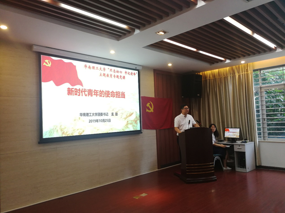 2019年10月25日,2017级食品科学与工程2班在13号楼东塘厅举办了班级团日活动。本次活动又为华南理工大学“不忘初心,牢记使命”主题教育专题党课,2班十分荣幸的听取了本次党课教育。本次党课的主讲人为华南理工大学团委书记孟勋老师,出席本次活动的嘉宾还有院研究生辅导员崔蓉老师。