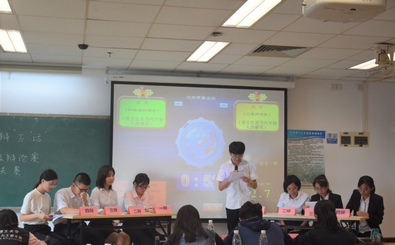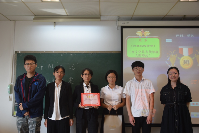 继食品科学与工程学院2019“千辩万话”院级辩论赛初赛后,万众期待的决赛于2019年11月2日上午9时在大学城校区A4-605教室举行。本次比赛有幸邀请到我院17级辩论队队长姚逾然学长、新闻与传播学院17级辩论队队长邵津学姐以及我院17级辩论队副队长姬健菲学姐作为评委。