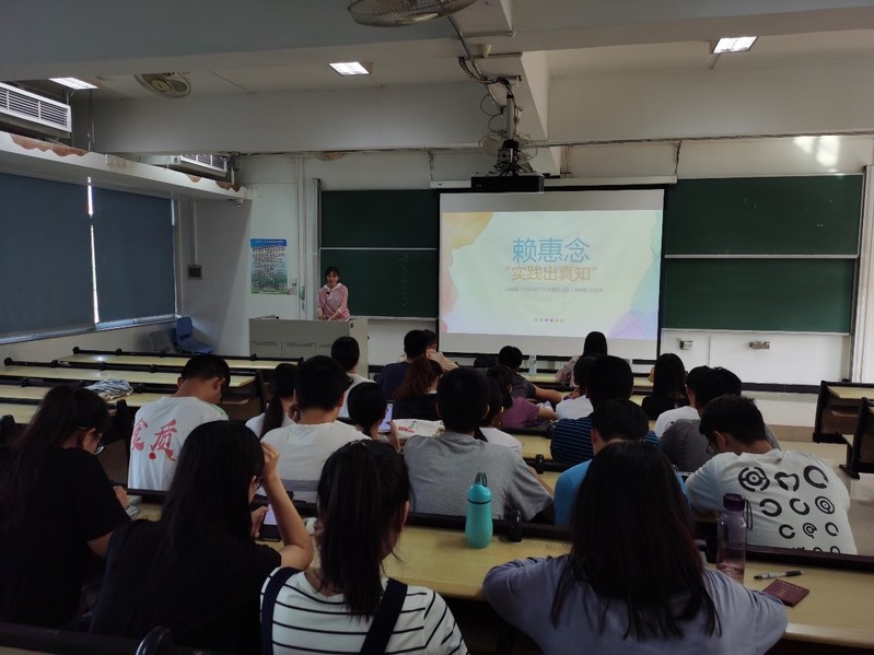 第一位给我们带来展示的是赖惠念同学,她介绍了自己大一的时候去山区支教和大二时参加徐福记面试大赛后到徐福记实习的经历,点出了自己的优点——待人真诚、乐于实践、活泼开朗,喜欢体验新鲜事物,因为她的努力和善良,她获得了大家的认可;因为她的真诚和活泼,她收获了真挚的友谊,她的展示让同学们了解到认真做事,用心做人,勇于尝试是多么的重要,而且这是每一个人都可以做到的。