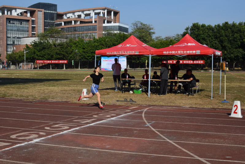 7日下午,大家陆陆续续地来到了田径场,贴心的工作人员还为大家准备了水果和饮用水,运动员们检录后也开始活动手腕脚腕,做好赛前热身活动。随着主持人宣布比赛项目的开始,整个下午的运动会就此拉开帷幕。7日下午进行的径赛有男子和女子100米、400米、1500米决赛,田赛项目有男子跳远、调高和标枪决赛,女子跳远决赛。整个田径场上充满了加油助威的声音,枪声响起跑道上各位运动健儿健步如飞;沙坑里的每个痕迹都是每个运动员奋力一跃的印记;被运动员掷出的标枪在空中划过一条完美的弧线。我院运动员不负使命,在每个项目里都有着出色的表现,并取得了优异的成绩。傍晚5点30分,整个下午的比赛到了尾声,大家带着喜悦的心情和必胜的信心准备周六的开幕式和赛程。