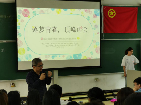 2020年9月27日下午3点整,在团旗的光辉照耀下,2019级食品科学与工程1班与食品质量与安全班的同学们共聚330101教室。伴着歌曲《我的梦》激扬的旋律,同学们在抽签分组后有序入座,随后团支书江灏然宣布活动开始。