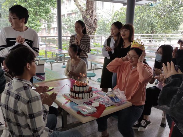 在会议的尾声,团支书毕丽琴为在10月生日的同学们送上了生日蛋糕和生日祝福。同学们边吃着生日蛋糕边玩着“一起说故事”的趣味游戏。在同学们的欢声笑语中,本次会议圆满结束。