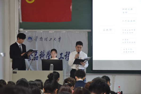 2020年12月6日14时30分,华南理工大学(以下简称“我校”)食品科学与工程学院(以下简称“我院”)第四次团员代表大会暨学生代表大会在五山校区340204隆重举办,出席大会的领导和嘉宾有食品科学与工程学院团委副书记崔蓉老师、团委副书记郭振标老师、我校学生会主席裴飞科同学、我院团委副书记梁莹同学、我院团委副书记孙雪岩同学、我院学生会主席罗怀楠同学、我院学生会副主席周奕辰同学、我院学生会副主席骆俊杰同学。