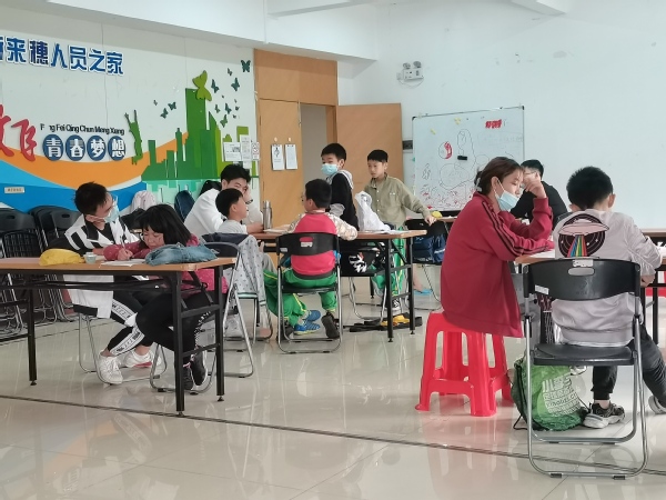 下午两点半,在社工站带队人的引领下,活动准时开始。本次活动共分为两个部分:辅导作业和游戏时间。首先,志愿者们帮助孩子们解决学习上的问题,每个志愿者负责两到三个孩子的作业辅导。志愿者们与孩子们在一问一答中认识彼此,拉近距离。当孩子们全部做完作业,就迎来了孩子们最期待的游戏时间。孩子们在志愿者的组织下接连进行了反指令和幸运数字的游戏,游戏过程中孩子们和志愿者们的欢笑声不断。游戏结束后,志愿者们给小朋友们送上了小奖品,也宣告本次志愿活动圆满结束。