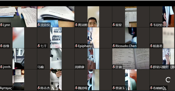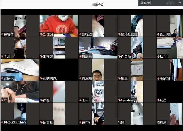 在方言里,“eng”是“硬”的意思,“eng学”也就是“硬学、死命学”之意。之前没有学会学懂的知识,趁着考前的时间尽快补起来,这便是开展本次活动的目的。上午8时15分,同学们准时到达图书馆门前集中签到,随后各自进入图书馆学习。学习过程中要求每位同学打开腾讯会议,进入指定房间号,关闭麦克风,打开摄像头并对准复习资料,全班一起线上学习。为了增加同学们学习的动力,学习委员专门在班级群里下发了一套复习题,规定时间内,正确率最高,完成时间最短的两名同学可以获得神秘礼品一份。每一个会议画面里,同学们都认真看着书本、做着习题,一个半小时的线上学习很快过去,最后贾若涵、谭睿林两位同学获得了神秘奖品。