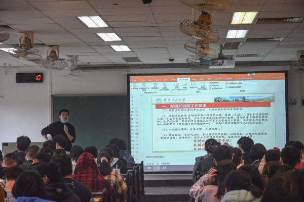 十二月,忙碌月。在经历了紧张的期末备考之后,2020级和2019级全体同学马上就要开始为期15天的军事训练了。大学生军训是加强全民国防教育的需要,是全民教育的一项重要内容,也是当代大学生整个思想政治教育的重要组成部分。为了让同学们对军训安排有更全面的了解,动员全体同学以饱满的热情投入到军训工作中,华南理工大学食品科学与工程学院于2020年12月24日,在华南理工大学大学城校区A4-301、五山校区340103分别召开了2020级和2019级军训动员大会。参加本次活动的有:党委副书记李昀老师、本科生辅导员郭振标老师、本科生兼职辅导员罗怀楠老师以及20级与19级全体学生。