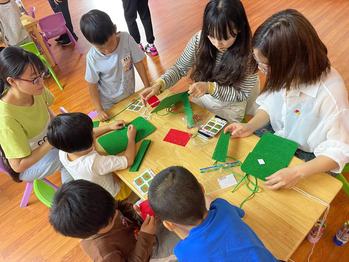 最后是手工环节,支部成员带领小朋友们一起做手工,通过简单的缝线、粘贴和折叠制作出一个红军包,让小朋友们体会到了动手操作的快乐。小朋友们把红军包背在身上,仿佛成了一名小小的红军战士,他们感到无比自豪。接着,支部成员和小朋友们完成绘本《重做长征路》。小朋友们在笔下描绘红军战士的形象,把长征战士们的行军地图拼凑完整,了解到了长征之路的漫长凶险和红军战士们的不畏艰险,体会到了坚韧不拔、勇往直前的长征精神。
