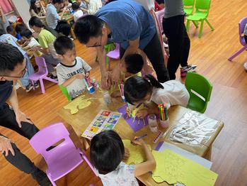 下午3点,支部成员们到达幼儿园,见到了一张张充满好奇与期待的面孔,在简单的热身小游戏以后,支部成员和小朋友们迅速熟悉起来。首先,向小朋友们讲解了中国共产党的百年历史,从建党时期共产党为迷茫时期的中国指明了方向,到抗日战争时期共产党带领人民赶走了侵略者,到改革开放时期共产党领导人民一同为了小康而奋斗,到社会主义新时期共产党在新时代和人民一起建设更加光明的未来。支部成员生动有趣的讲解,让孩子们体会到党是如何带领人民创造了中华民族一个又一个奇迹,在小朋友们心中初步树立了党的光辉形象。