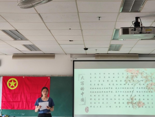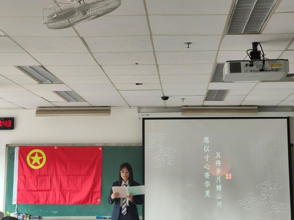 活动在下午16:45准时开始,主持人施忆雯同学先带同学们回顾了五四精神的深刻内涵,并阐明了本次朗诵比赛弘扬青春梦想的意义,接着朗诵比赛正式开始。