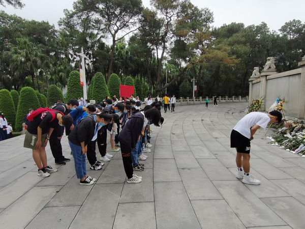 活动当日,同学们在广州起义烈士陵园正门集合。首先,陵园讲解员带领同学们进行了参观,让同学们加深了对这一段历史的理解。接下来,食品科学与工程三班全体同学在广州起义纪念碑前集合完毕,团支书张智豪同学宣布扫墓仪式开始。同学们穿着整齐,站列有序,先后敬献鲜花并默哀,向烈士表达最崇高的敬意。最后,学生代表李孟轲同学进行了发言,她追忆了百年前广州起义烈士可歌可泣的故事,希望同学们向先烈学习,为祖国做出自己的贡献。