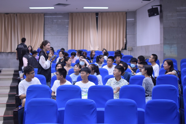 讲话结束,今晚最令人期待的游戏环节便开始了。本次活动采用分组进行游戏,高年级的志愿者同学担任每个小组的组长,分别带领各组21级新生进行游戏,游戏失败者便要接受惩罚,上台表演才艺。首先是“你是谁”开场活动,每小组围成一个圆圈坐着,每个人按顺序依次自我介绍,待所有人介绍过后,组长通过两次转笔,指定两次笔头所指两人起立依次复述对方刚才所自我介绍的内容,不能完整复述对方内容则视为游戏失败,接受惩罚。初步的自我结束让大家对对方有了一个基本认识,接下来的“我最特别”和数字炸弹游戏让大家进行进一步的相互了解。通过这些小游戏,小组成员很快便打成一片,大家时而紧张,时而激动,玩的不亦乐乎。每进行一个游戏便会有一个惩罚时间,一开始上台的同学有些害羞,只做了一个自我介绍,后面上台的同学纷纷展示自己的才艺,台下的观众赞不绝口,这一惩罚环节最后成了大家的表演环节。其中不少同学一展歌喉,有节奏感强的Beatbox、有经典的粤语歌、有动听的自创歌曲......