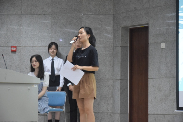 伴随着团委学生会自制日常小视频的放映,宣讲会在大家的期待中准时开始。第一项,是邝嘉华老师上台讲话,简要介绍了食品科学与工程学院,表达了对21级新生的欢迎以及对他们的美好祝愿;紧接着是谢庆彤学姐上台发言,简要介绍了团委学生会,并热情欢迎新同学们的加入。接下来是别出心裁的小剧场,由全体团委学生会成员共同参与录制,紧凑的情节和参演人诙谐的语调很好地带动了现场氛围,也在短时间内激起了同学们的好奇心。随后进入宣讲环节,各部门分别介绍了部门情况,以不同形式展现了部门风采,其中各部门分别拍摄的不同风格视频尤为出彩与吸引人,现场一片热烈。在节奏紧凑的宣讲过程中,不乏简单有趣的小游戏:听歌猜曲和听词猜曲,同学们踊跃参与,并赢取了团学精心准备的礼物,现场气氛十分欢快。