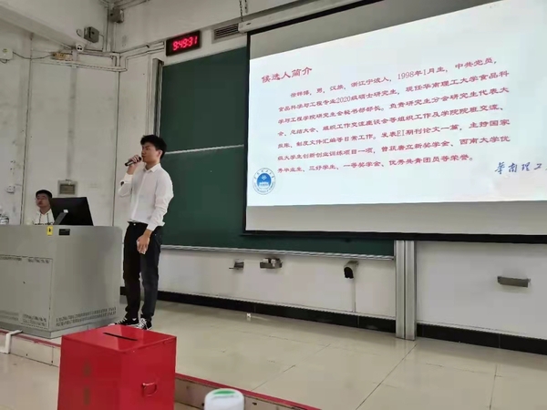 2021年10月13日上午9时,食品科学与工程学院第六次研究生代表大会在340104教室顺利举行。出席本次会议的嘉宾有学院党委副书记李昀老师,研究生辅导员田蕾、崔蓉及罗怀楠老师,校研究生会执行主席邹慧瑜以及各学院研究生分会嘉宾代表。本次代表大会全面阐述了学院第五届研分会主席团的工作,表彰了在工作中表现优异的研究生干部并选举产生了第六届研分会主席团成员,确保了学院研分会工作的延续性与发展性。
