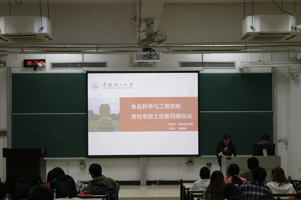 此次活动中,2021级硕士研究生杜晓仪和2019级本科生白可同学作为领唱者,指导同学们练习《华工之歌》。过程中,同学们更深入地了解了校歌歌词背后的含义,领悟到了一代代华工人传承的精神。“前贤创业,后人图强。崛起南国,培育栋梁。”正是一代代华工青年的拼搏奋进,才铸就了如今的华南理工大学,华工青年同华工一起为祖国的繁荣发展添砖加瓦。新一代的华工学子生逢机遇与挑战并存的年代,应不负重托,倍道而行,真正的实现“中华振兴,我辈担当”!作为研究生,我们更应该专注于突破创新,提高我校食品专业的学科优势,积极投身我国食品工业的建设中去,为人民提供更健康、更丰富的饮食。