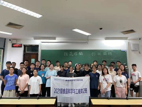 为提高同学们的安全防范意识,增强自我保护能力,进一步维护同学们的自身合法权益,华南理工大学2021级食品科学与工程学院二班于2021年10月14日17点整,于华南理工大学大学城校区A1304教室开展了以“预防网络诈骗”为主题的教育活动。出席本次活动的有:2021级食品科学与工程学院二班全体同学。