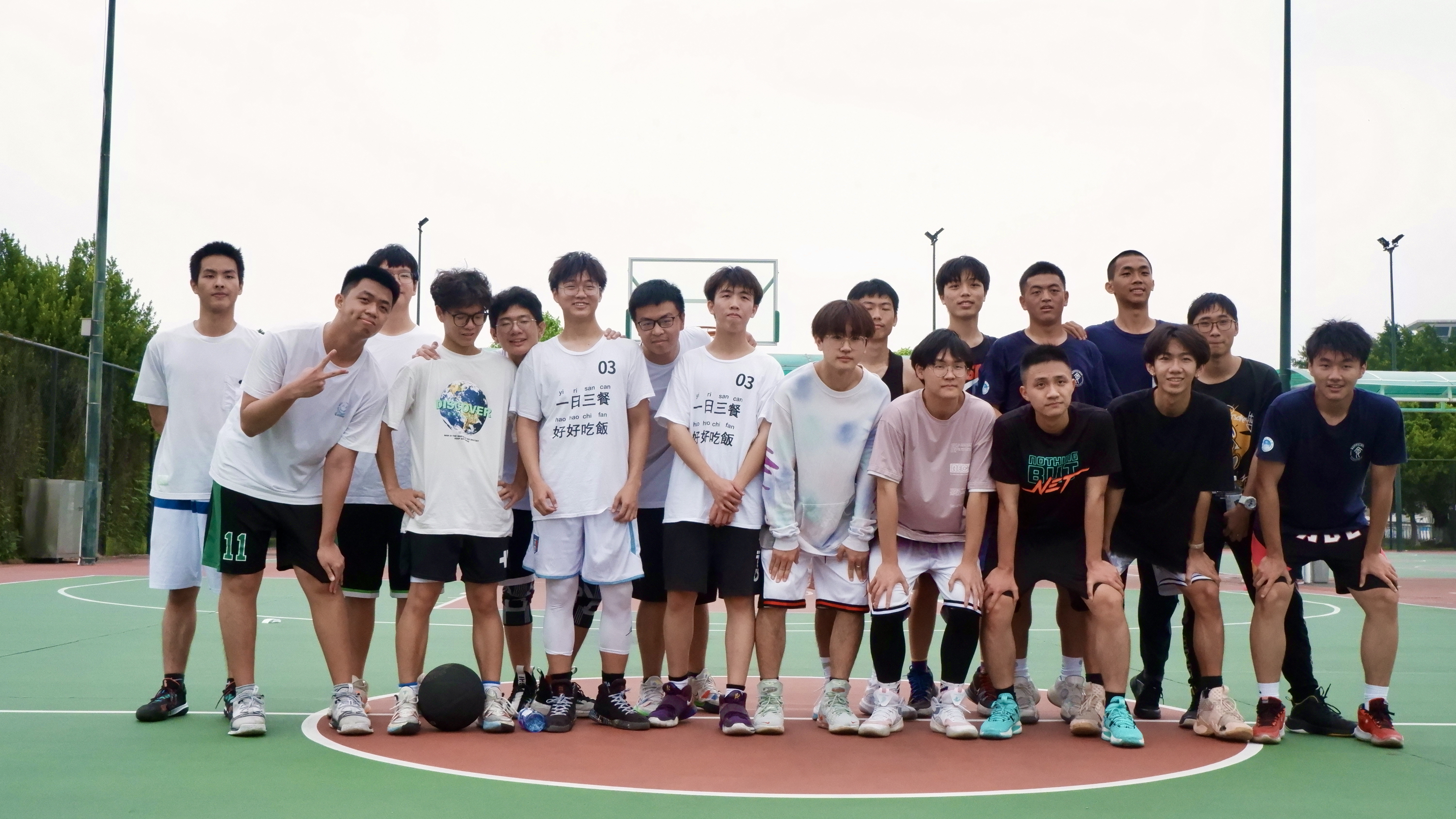 篮球赛结束之后,双方队员在篮球场中央合影留念,本次篮球赛团日活动圆满结束。