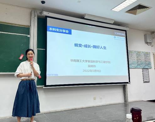 为弘扬追求真理、勇攀高峰的科学精神,树立勇于创新、严谨求实的学术风气,食品科学与工程学院举办了学术系列专题讲座。2022年5月9日晚上7点,我院吴晓玲教授为同学们带来了主题为“蜕变·成长·酶好人生”的专业科普讲座。李晓玺副院长、刘冬梅教授、辅导员邝嘉华以及21级全体本科生共同参与本次活动。
