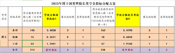根据《食品科学与工程学院研究生国奖暨校长奖学金指标分配办法》,现将我院2023年博士