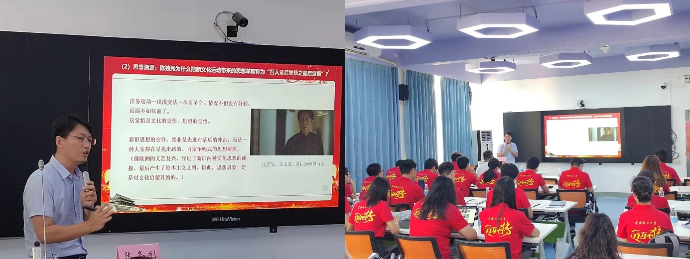 本次理论学习会由华南理工大学马克思主义学院副教授张冬利老师进行授课。他以《习近平新时代中国特色社会主义思想的科学体系和精神品格》为主题,回顾了百年来,中国共产党在砥砺前行的道路上,对中国特色社会主义制度漫长而又艰辛的探索。时代在发展,中国特色社会主义也在不断地创新。如今,我们已经在社会主义本质问题上取得了重大进展。张冬利老师强调,党的二十大报告提出,“我们要拓展世界眼光,深刻洞察人类发展进步潮流,积极回应各国人民普遍关切,为解决人类面临的共同问题作出贡献”。这在宣讲员间产生了热烈的反响,也对如何切实把党的二十大精神落实到位有了更为深刻的认知。