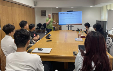 F Fred教授讲授AI前沿课程并与团队成员合影