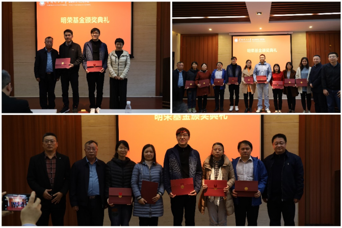 随后,进行了明荣基金表彰颁奖仪式,基金创立者赵谋明教授和领导班子一起为获奖人员颁奖。