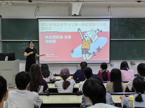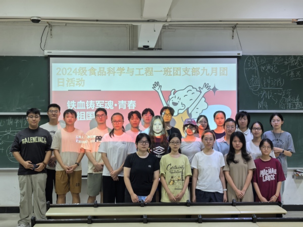 2025年9月28日18时20分,食品科学与工程学院2024级食品科学与工程一班全体团员于华南理工大学五山校区340301教室开展了以“铁血铸军魂,青春献祖国”为主题的团日活动。本次活动通过宣讲PPT、解读国防建设成果与军人精神内涵,引导同学们深刻认识国家强军事业的重要意义,激发新时代青年的爱国热情与使命担当。