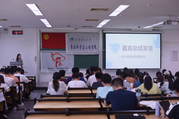 2025年10月18日,食品科学与工程学院团委、学生会全员大会于华南理工大学大学城校区A3302课室开展。出席本次会议的嘉宾有学生会指导老师、本科生辅导员田蕾老师,团委副书记李茵,学生会主席团成员彭心耘、陈怡如、夏楚丹。
