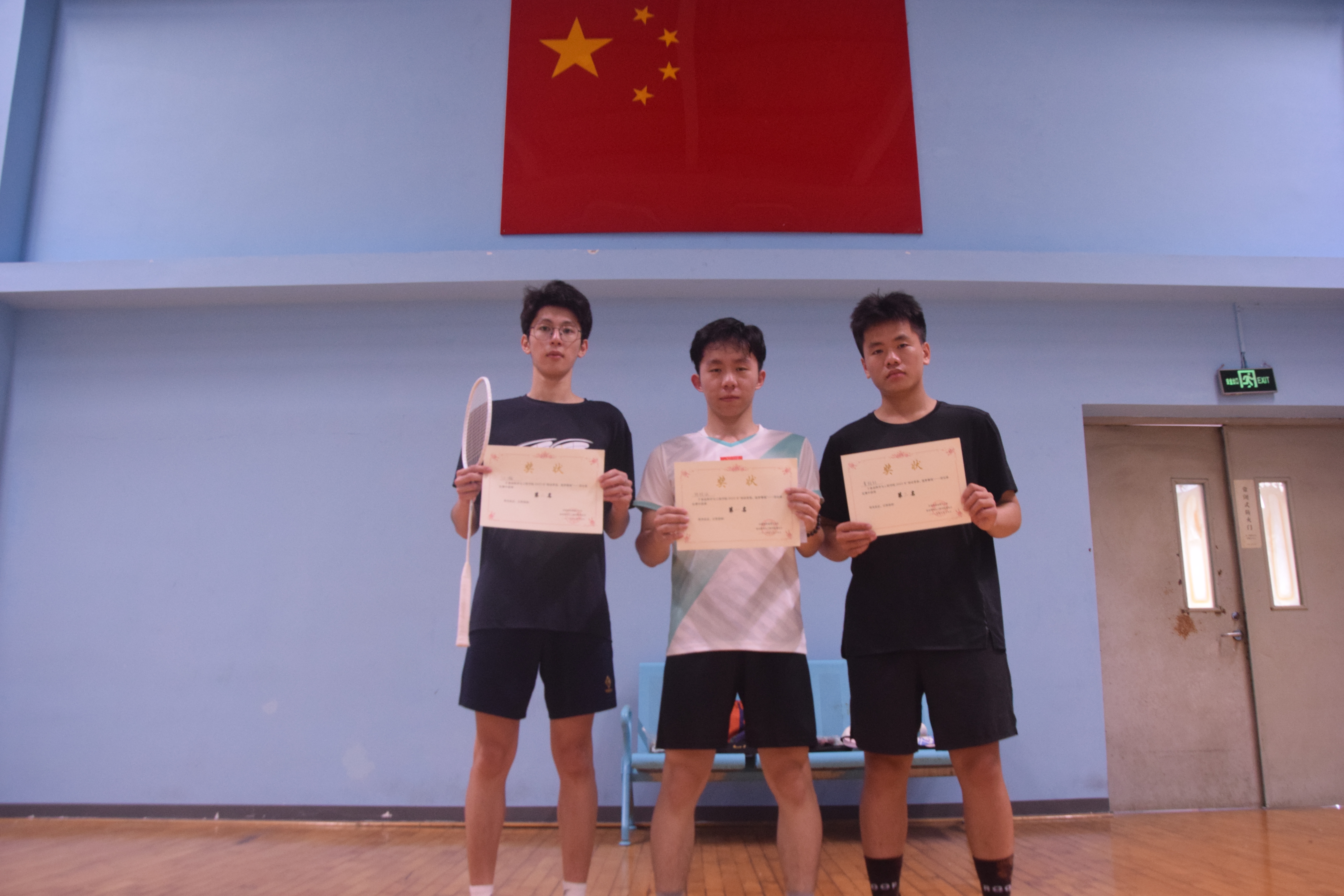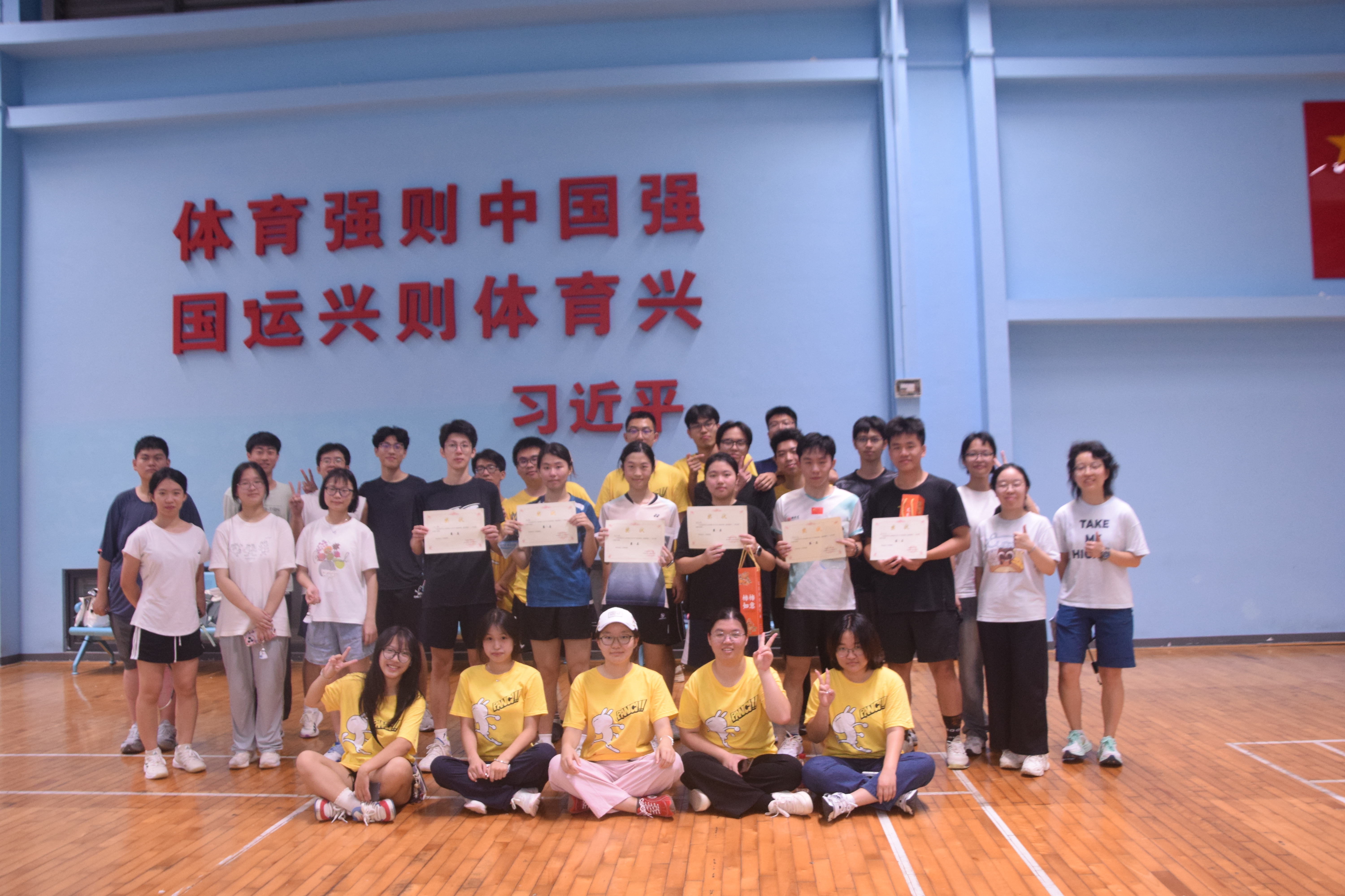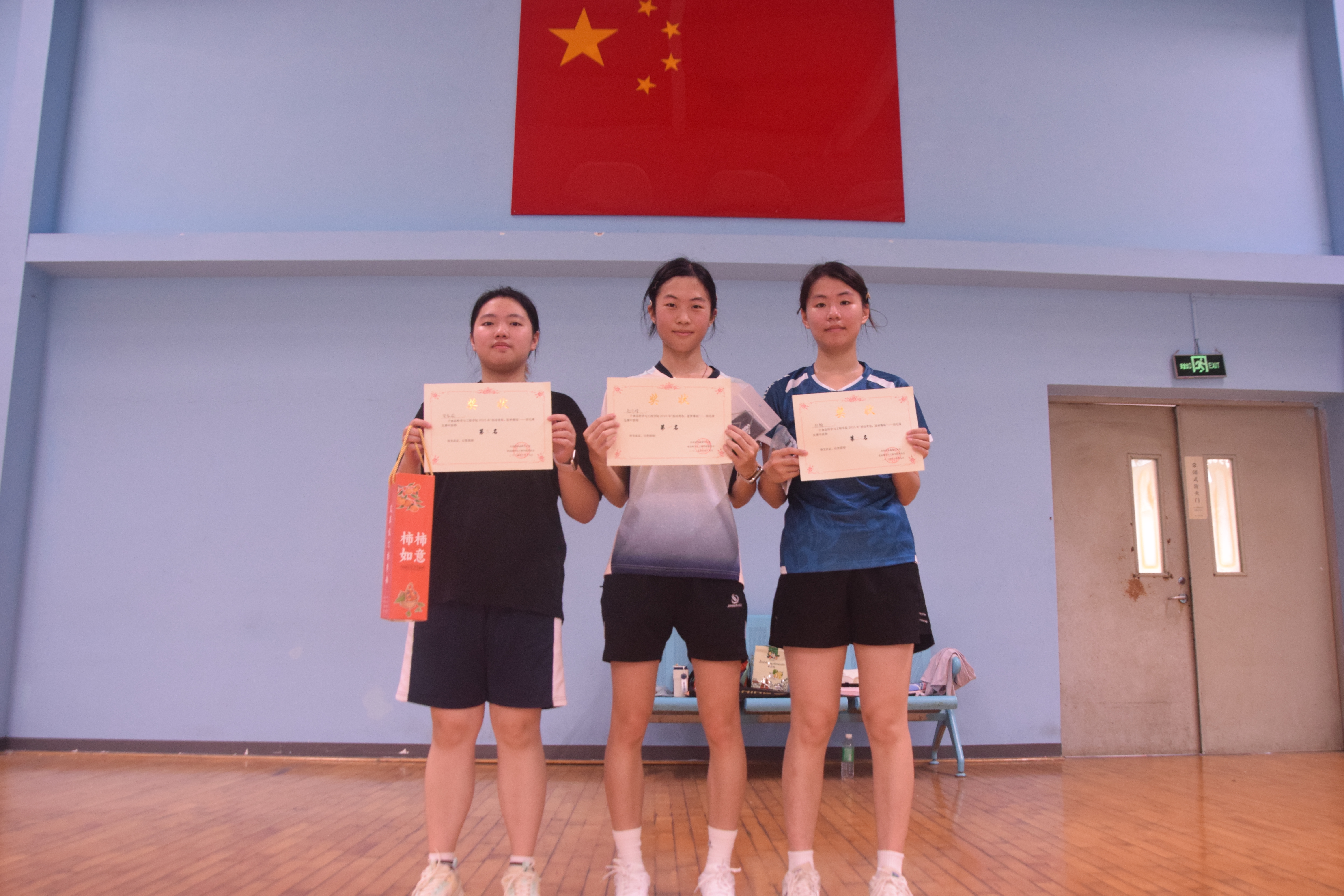 赛场上,选手们精神抖擞,斗志昂扬,步伐灵活,时而以精准发球拉开攻势,时而用后场高远球化解危机,凭借细腻的网前技术,以巧破力,轻吊、点杀等动作行云流水。在男单决赛里,两名选手历经三局苦战,即使体力透支仍坚持每球必争,保持精准的落点控制与顽强的救球态度。场边观众的加油声此起彼伏,掌声持续不断。裁判们坚守岗位,精准判定每一个球的落点,确保比赛公平公正,志愿者们则穿梭赛场,及时提供饮水、捡球等服务,保障赛事顺畅进行。经过激烈比拼,男单、女单冠亚季军相继诞生。体育部为获奖选手颁发奖状和奖品并进行合影留念,本次羽毛球赛圆满结束。