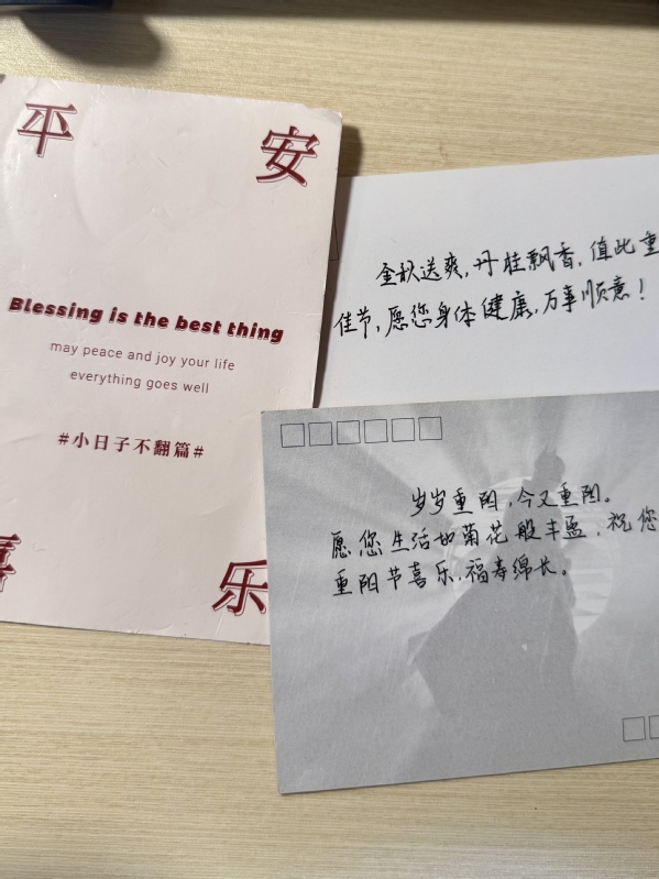 接着是朗诵诗词环节,同学们自告奋勇朗诵有关重阳节的诗词,其中就包括家喻户晓的《九月九日忆山东兄弟》,大家皆被诗词的情感所感染,不由得想起家中长辈。最后进行敬老活动,活动形式主要包括给家中老人打电话、制作重阳节主题卡片等,同学们通过这样的形式表达对长辈的尊敬与爱戴。
