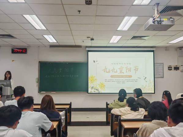 今年重阳节在本月29日,本次活动在团支书曹玲向大家介绍重阳节的历史起源中展开。活动内容主要包括“介绍重阳节的起源与别名、了解重阳节的民间习俗、朗诵重阳节著名诗词和进行重阳节敬老活动”。首先由团支书介绍“重阳”之名源于《易经》中的“阳爻为九”,九九归一,一元肇始,万象更新,因此古人认为重阳是一个值得庆贺的吉祥日子。接着团支书介绍了重阳节有吃重阳糕、祭祖和赏菊等传统习俗,并讲述古人九月作糕的本意是祝愿子女百事俱高;重阳祭祖的传统习俗在岭南一带至今仍盛行,人们在每年的重阳节举行祭祖活动;赏菊习俗源于菊文化,从三国魏晋以来,重阳聚会饮酒、赏菊赋诗已成时尚。通过了解重阳节的起源和习俗,同学们在增强对重阳节的认识的同时也增强了文化自信。