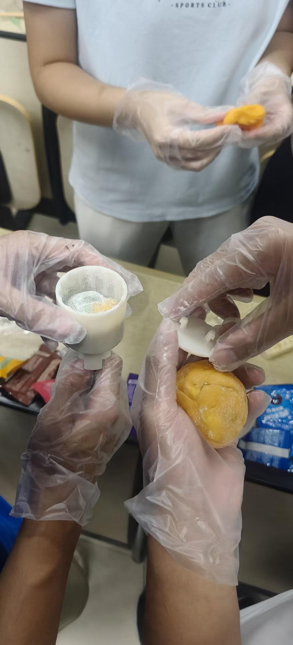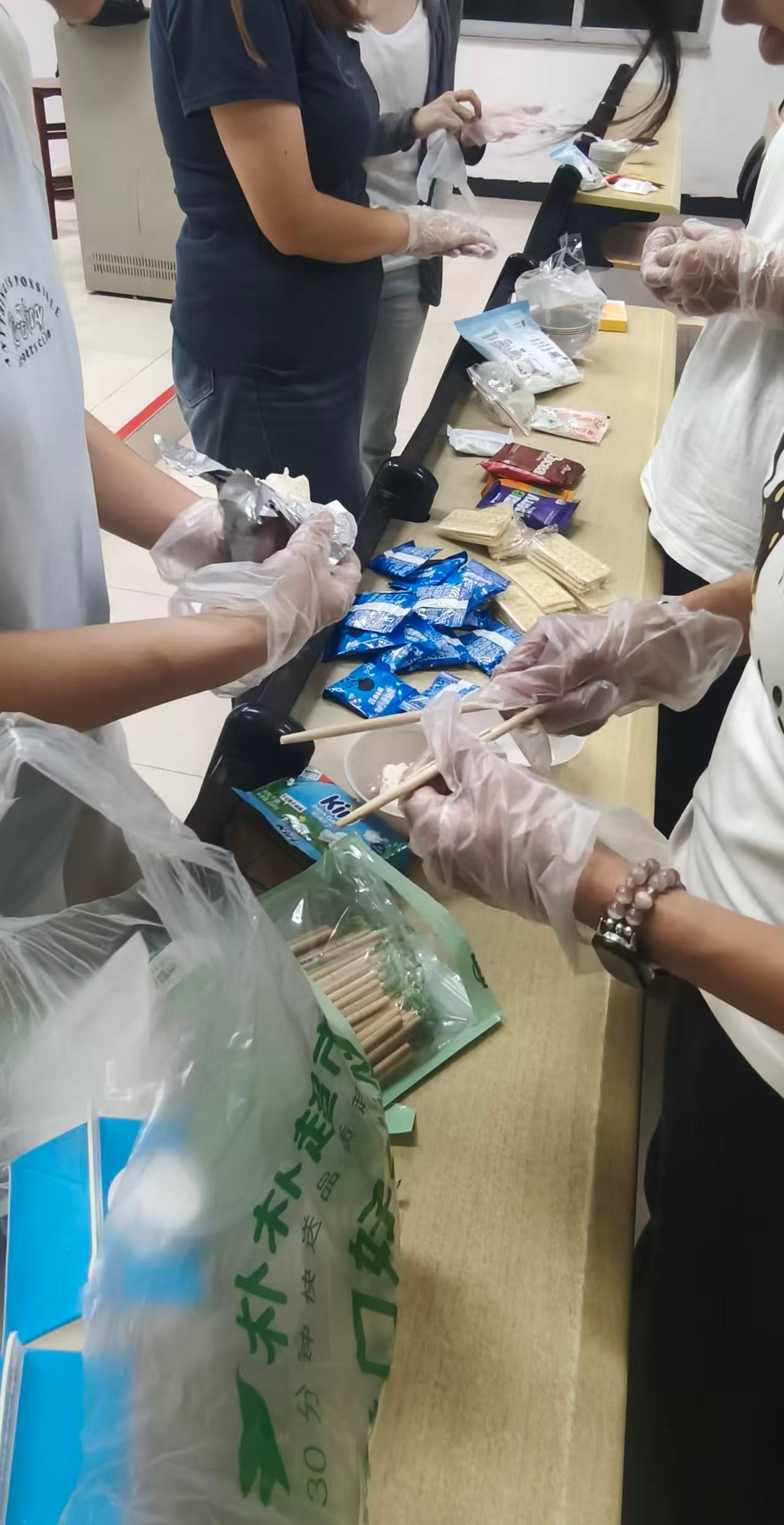 随后,大家便开始投入到各组别的月饼制作中去。成员间紧密协作,明确分工,充分发挥各优势,共同攻克制作过程中遇到的难题,大家的团队协作能力和沟通技巧得到了提升。